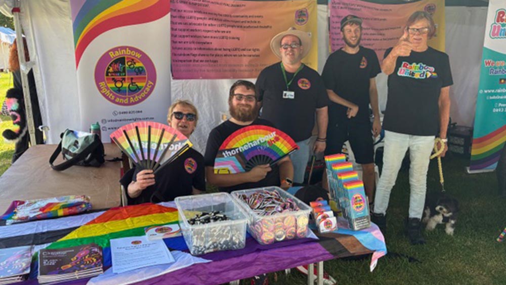 We’ve been going to Midsumma Carnival and having a stall for four years now. We hand out merchandise for Rainbow United and talk to everyone who comes to the stall.